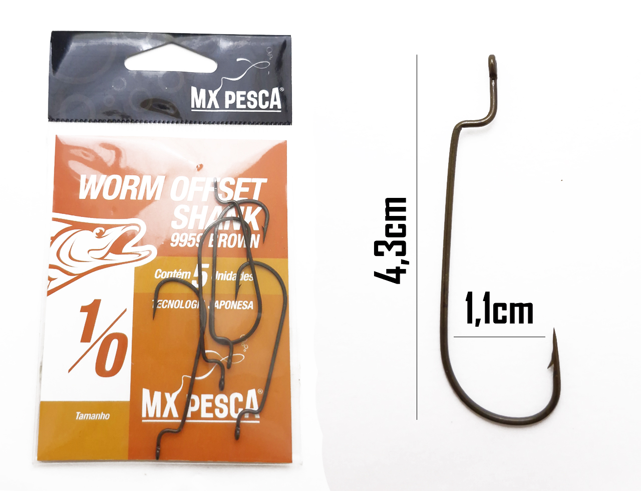 Anzol Worm Offset Shank 1/0 MX Pesca c/5 und